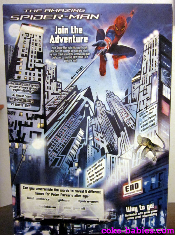 They don't bother including a prize, instead going for the more lazy "activities" back cover. Among the activities are one of the most complicated-looking mazes I've ever seen, and some trivia questions. The trivia questions are odd, since they seem written by someone who hasn't actually seen this Spider-Man version. They name the villain as the "Green Lizard" (?), and ask who said "With great power comes great responsibility", despite the fact that this classic line (spoiler alert, I guess?) isn't actually said in the movie.